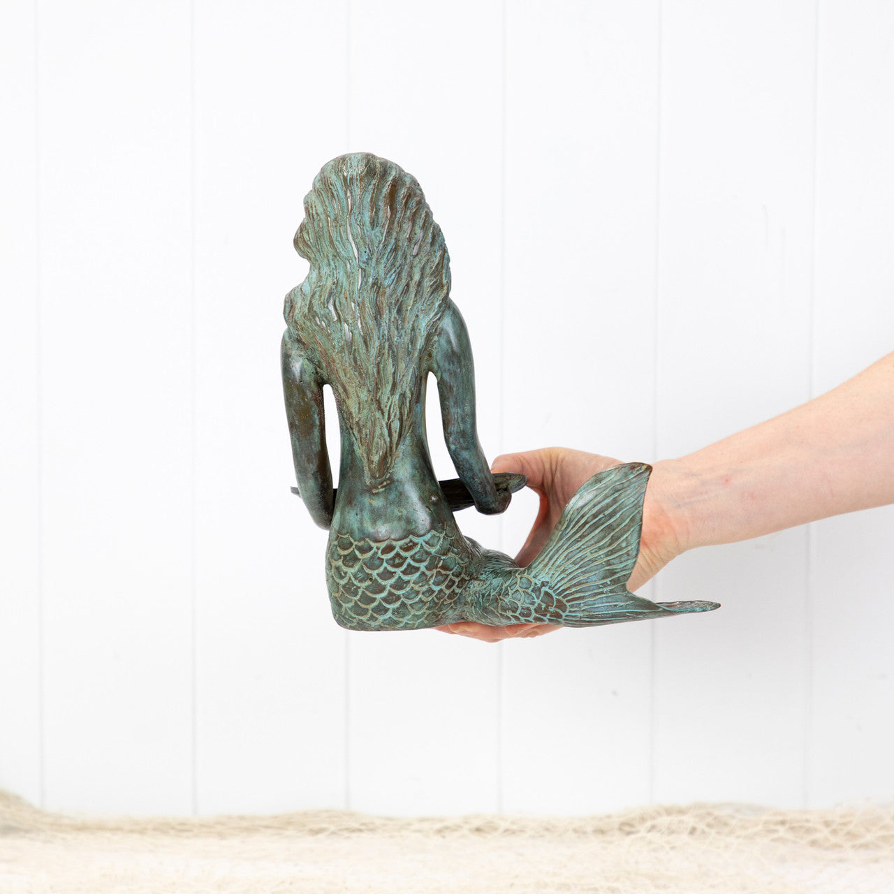 Beautifully detailed this mermaid is sitting with her tail elegantly to one side carrying a scallop shell.