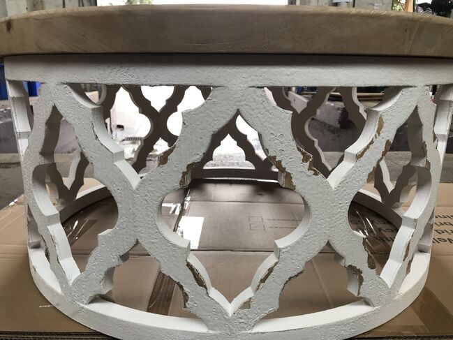 格子模様のラウンドシャビーシックコーヒーテーブル アンティーク調ホワイト