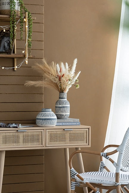 • ひび割れた緑青とダイナミックな模様が特徴のこの印象的な花瓶は、どんな部屋にも個性と魅力を添えます。この見事な作品を単独で、または背の高い枝を添えてシックなリビングルーム、素朴な広い部屋、またはモダンなオフィスに飾れば、古代の芸術性を彷彿とさせる外観になります。この作品のニュートラルカラーは、さまざまなスタイルや配色を引き立てます。