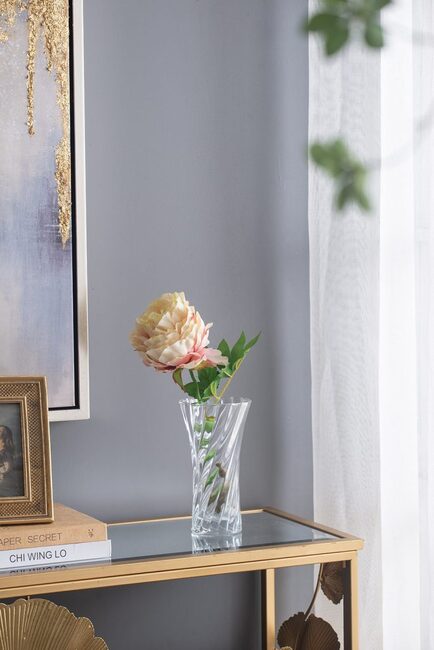 • フレアに広がった開口部を持つ曲線の柱の魅力的なシルエットが、このガラスの花瓶に優雅さを添えています。葉や花のアレンジメントを簡単に引き立てる螺旋模様で飾られています。この見事なセンターピースでコーヒーテーブルを活気づけ、雰囲気を盛り上げましょう。