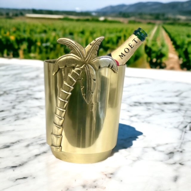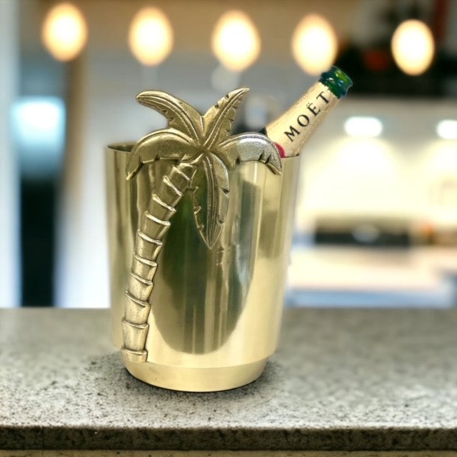 • Indulge in pure luxury with our Palm Tree Gold Bucket. This exquisite 20x29cm drink tub features a stunning gold palm tree design that adds a touch of elegance to any space.  Elevate your home decor with this exclusive and sophisticated bucket.