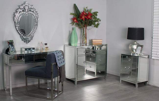 • 魅力的な 3 段ベッドサイド (ハンドル付き)。全体的にエレガントな外観と感触の、現代的なスタイルの 3 段引き出し付きミラー付きベッドサイド。磨き上げられたクロム リング プル ハンドルと各引き出しの周りのシャドウ ラインが特徴です。このスタイルはモダンな環境にフィットしますが、ミラーが魅力的な雰囲気を演出します。46X38X66CMSH