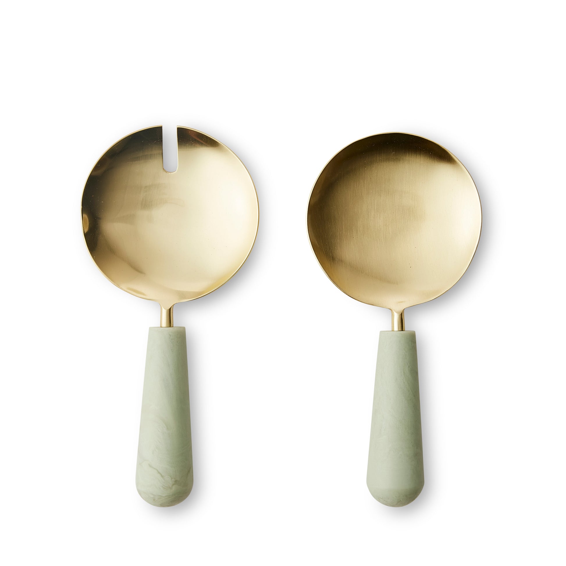 Aries Sage Green/Brass Salad Server Set L20.5Xw10Cm