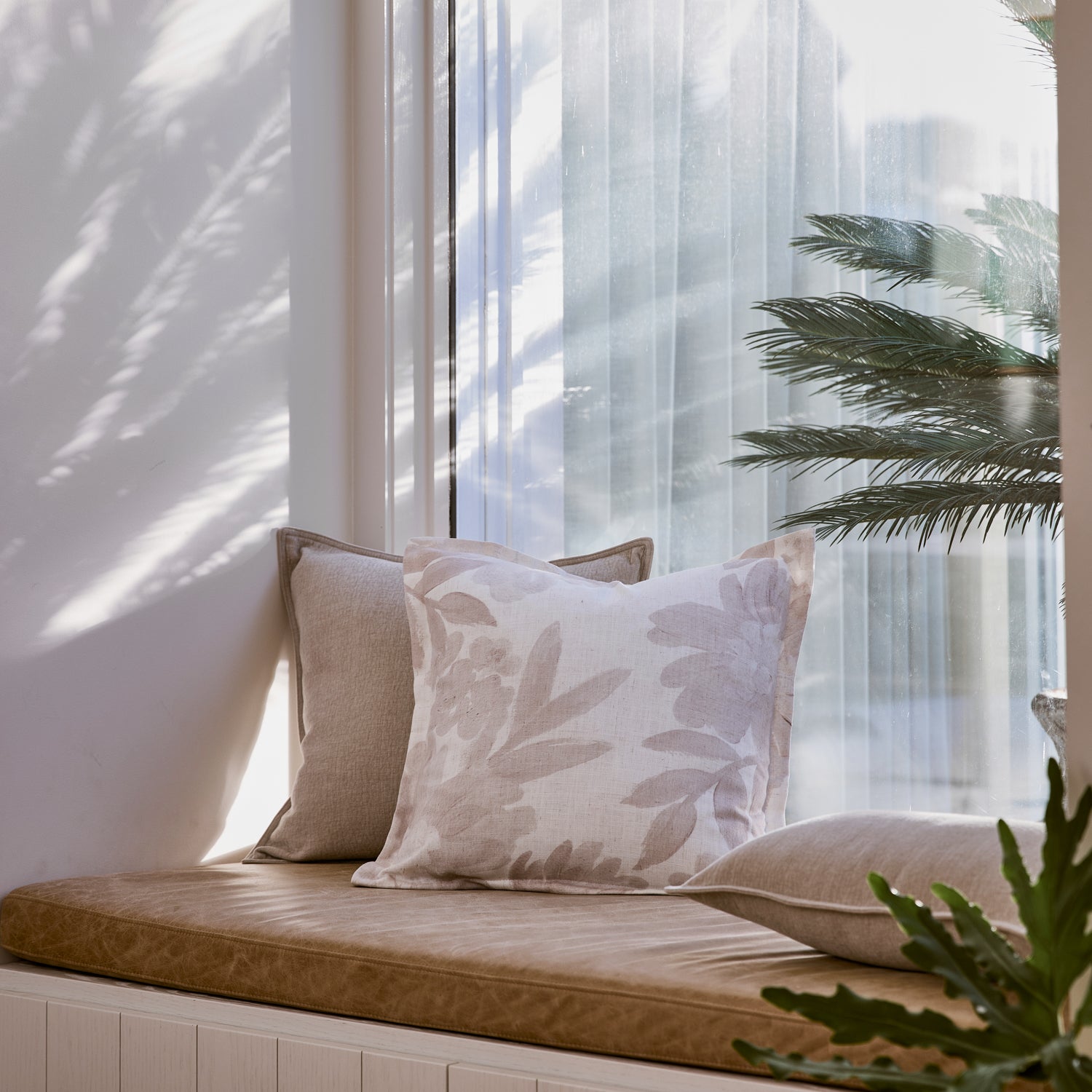 • Hand painted large scale neutral floral print on natural background with natural reverse and self flange.