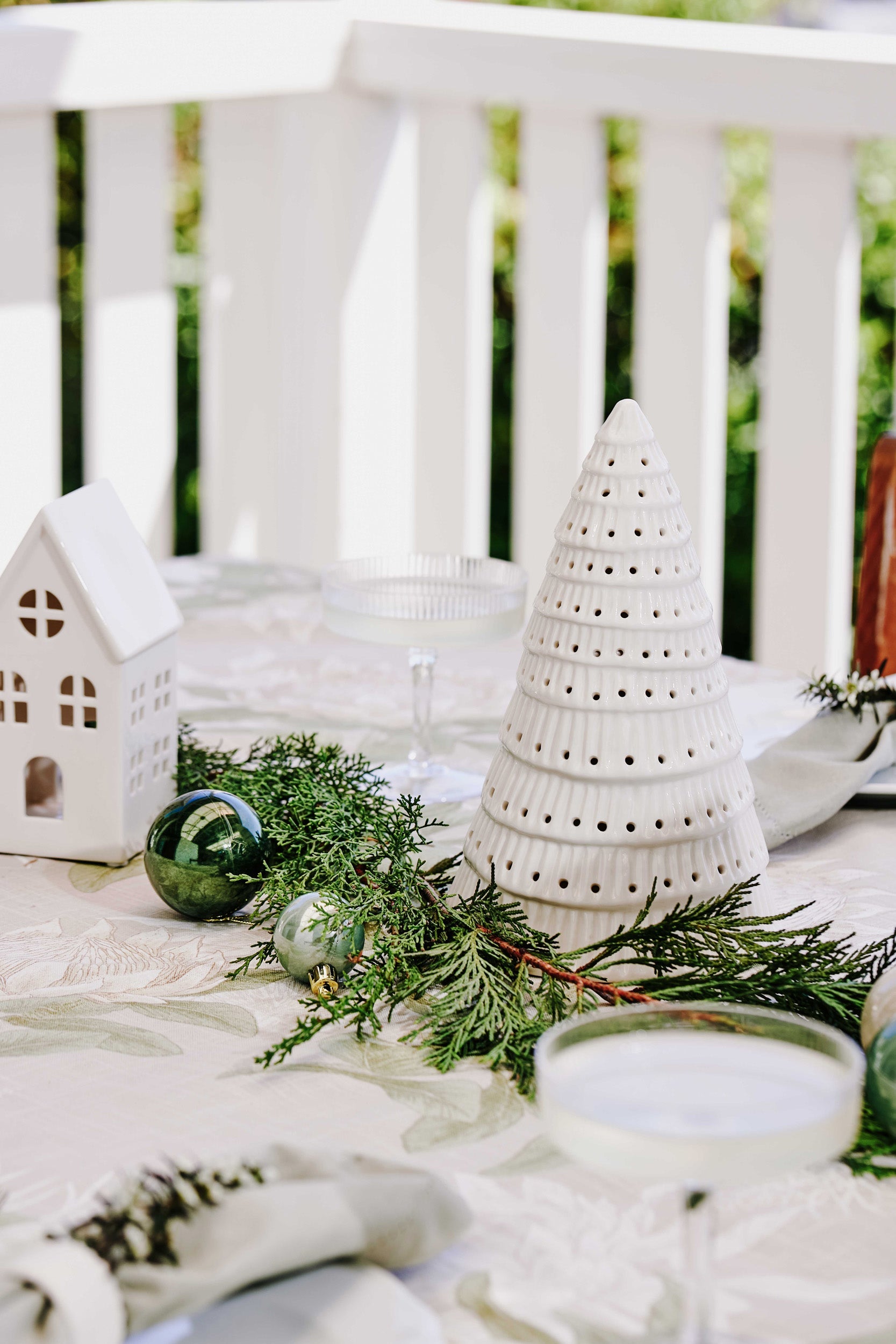 • Glazed pierced ceramic tree decoration with a base opening suitable for LED tealight.
