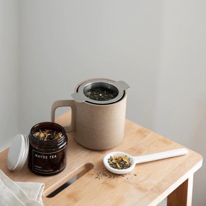 リサイクル可能な琥珀色のガラス瓶に詰められたダイジェスト ティーは、ただ淹れるだけでなく、ホリスティックな体験ができるという驚きの製品です。15 杯分の茶葉が入ったボリュームたっぷりのこのティーは、一杯ごとにセルフケアと優しいサポートの儀式となります。リラックスして一口ずつ飲み、ほのかな甘さが余韻に残るのを楽しみながら、ダイジェスト ティーの活力に満ちた味わいを堪能してください。消化の調和と全体的な健康のために作られた飲み物です。