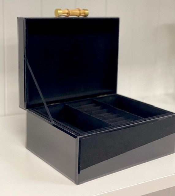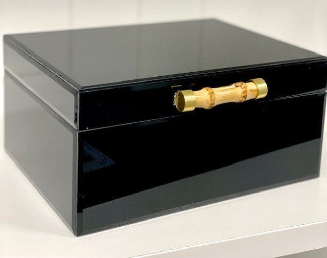 102C - Black Glass Jewel Box W/Bamboo Handle - Last 1 Left!
