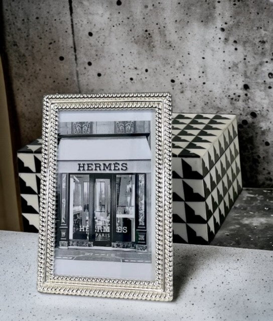 • Introducing our exquisite  Silver Plated Double Twist Frame, adorned with a delicate double twist design. Showcase two of your most cherished 5x7 photos in a luxurious and elegant manner. A perfect addition to any sophisticated home, this frame is sure to elevate your interior decor with its timeless beauty and intricate details.