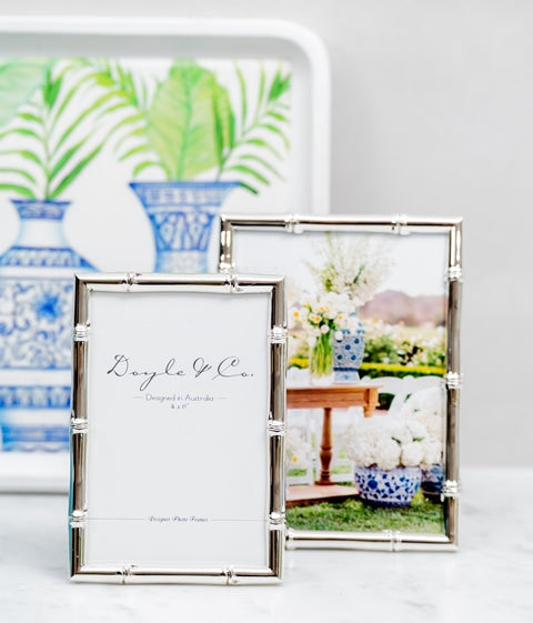 • Crafted to perfection, our Bamboo look frame will elevate any room with its silver-plated bamboo design. The 5 x 7 dimensions make it perfect for displaying your favourite memories. Add a touch of sophistication to your home decor with this exclusive piece.