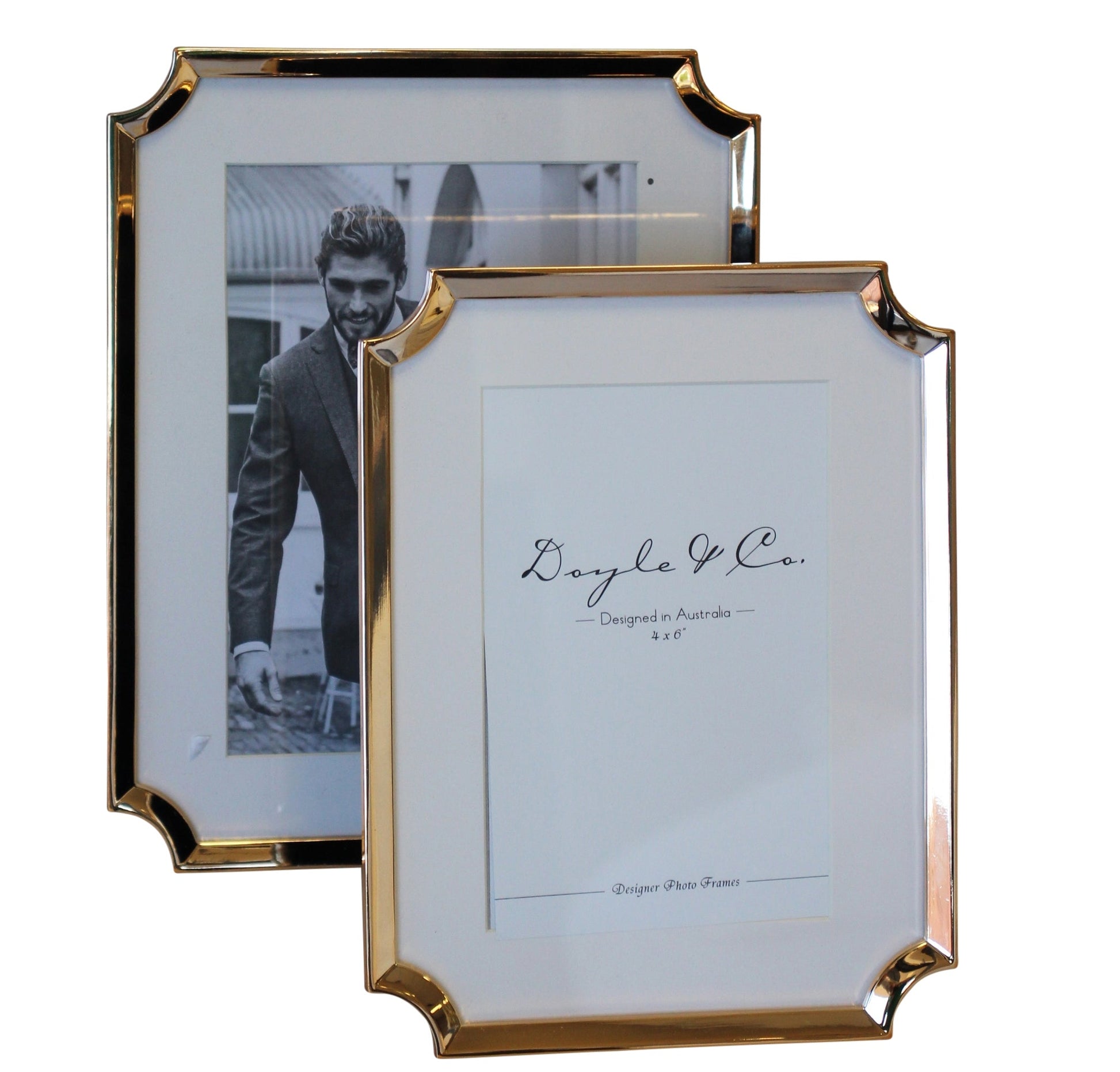 • Display your cherished memories in our exquisite Portsea Gold Clipped Corners Frame. The luxurious, handcrafted design boasts a gleaming gold finish and sophisticated clipped corners, adding an elegant touch to any space. Perfect for showcasing your favorite 4x6 photos in style.