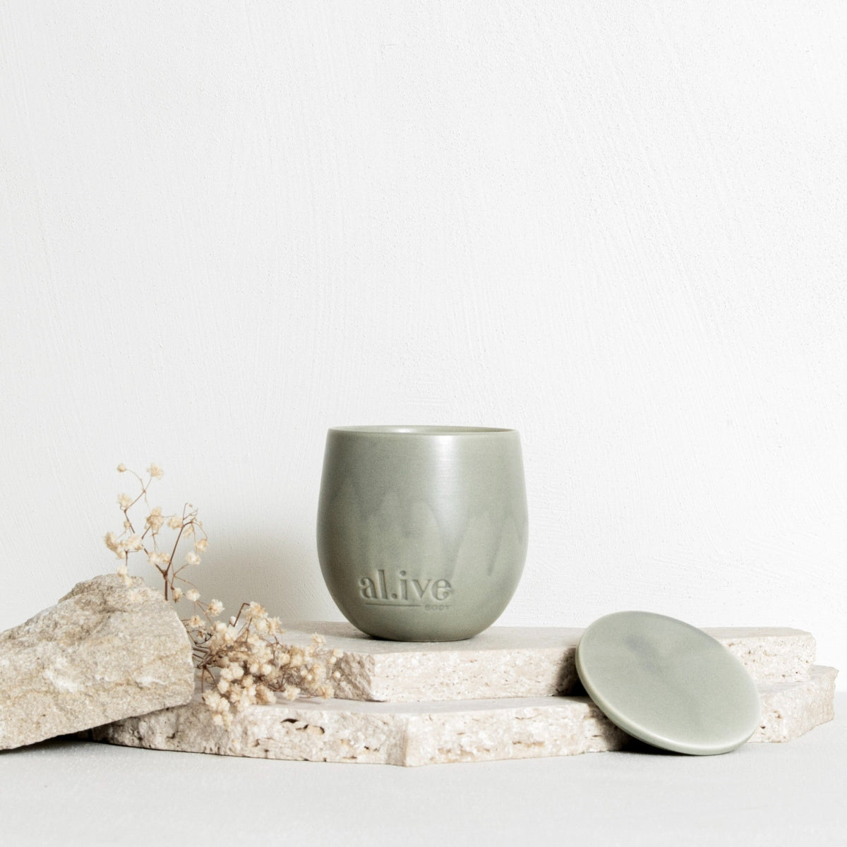 陶器の容器をご覧ください。これは単なるキャンドルホルダーを超えた芸術作品です。ユーカリグリーンのサテン仕上げの容器は、職人の手による工程の証です。細心の注意を払った浸漬法で手作業で釉薬をかけ、その結果、ユニークな色のバリエーションが生まれ、すべての作品が本当に唯一無二のものになります。電子レンジと食器洗い機で洗えるこの容器は、キャンドルの寿命を超えて、多目的なスタイリングアイテムやお気に入りのコーヒーカップに変身します。