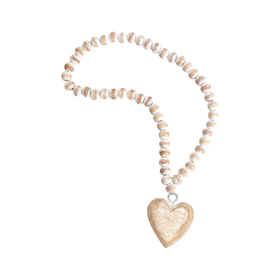 • Add some earthy global style to your home with the Handcrafted Mangowood Beaded Heart 60cm. This beautiful piece is hand crafted in India by an artisan from sustainable and durable mangowood made to last in a natural/whitewash finish. Style on your coffee or console table draped over some books to add a stylish homely feel to your space.