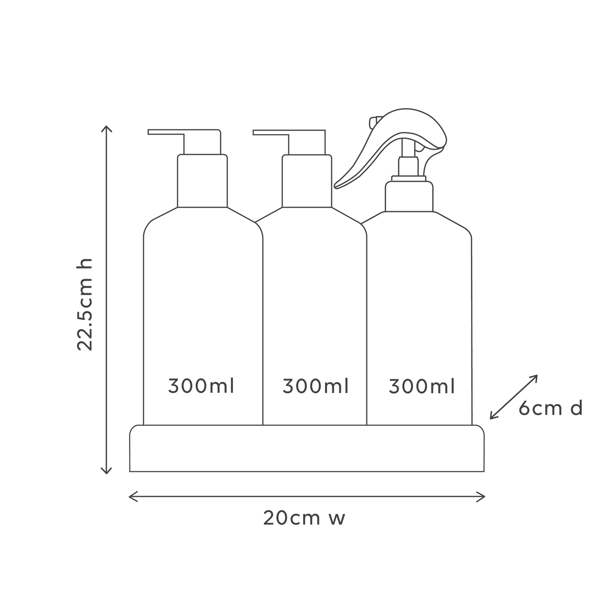 Our 300ml bottles are 100% recyclable and made from HDPE plastic. Our trays, made from ABS plastic, are designed for durability and longevity.
