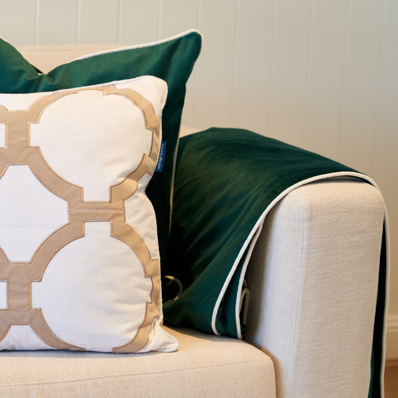 • エメラルド グリーンの豪華なベルベット スローの贅沢な魅力に浸りましょう。ソファやベッドのクッション スケープの芸術性を高める贅沢な一品です。細部にまで細心の注意を払って作られたこのスローは、ゆったりとしたサイズで、無地のアヒルの卵のような青いベルベット パネルが際立ち、前面と裏面の両方に贅沢な雰囲気がシームレスに広がります。