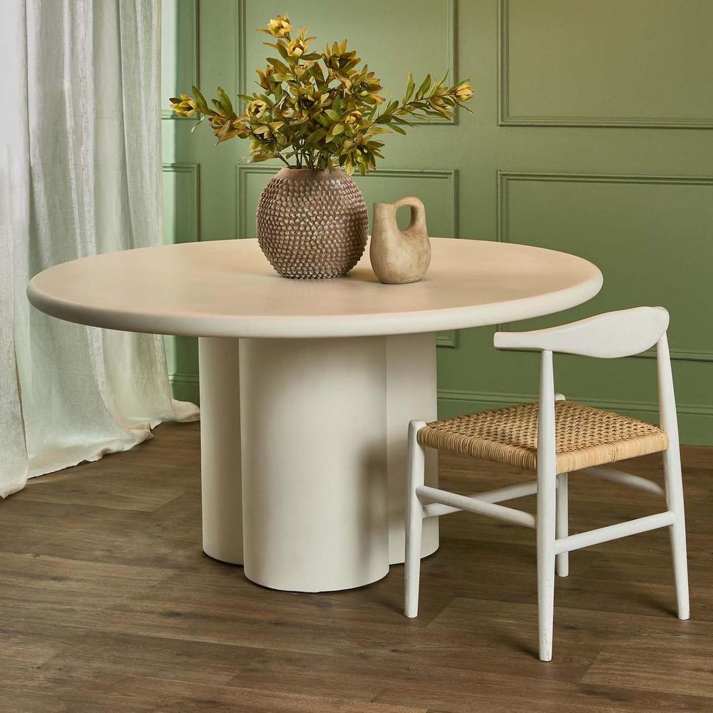 • Playful yet elegant, the Chloe Dining table can be styled in so many ways. The soft symmetrical curves belie the durable concrete finish.