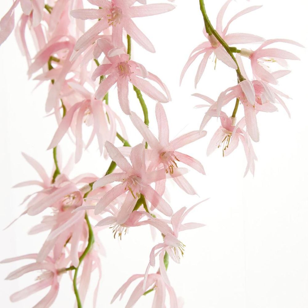 繊細な花びらが細い茎から流れ落ち、咲き誇るクモランのエッセンスをとらえた複雑な自然のダンスを創り出します。細部まで本物そっくりに仕上げられた花びらや葉は、この植物の傑作にリアリズムのタッチを加えています。吊り下げ式のデザインが動きと風通しの良さを演出し、空間にちょっとした遊び心と魅力を吹き込みます。