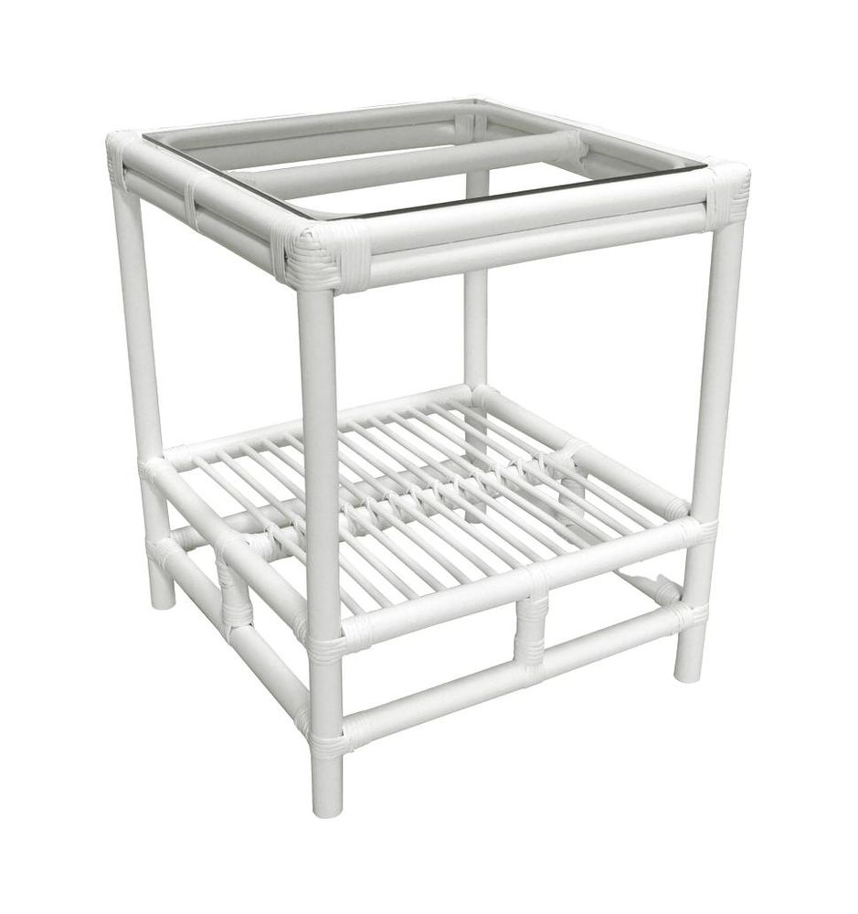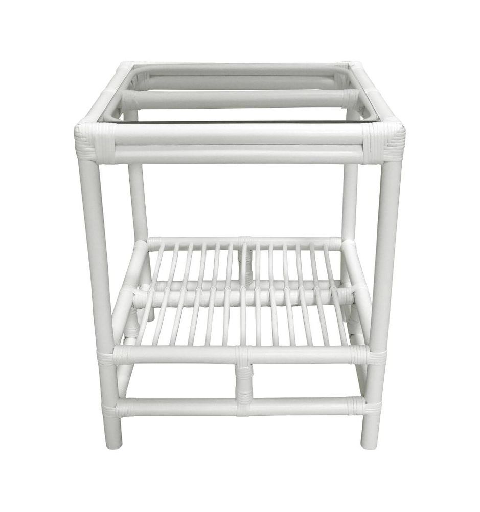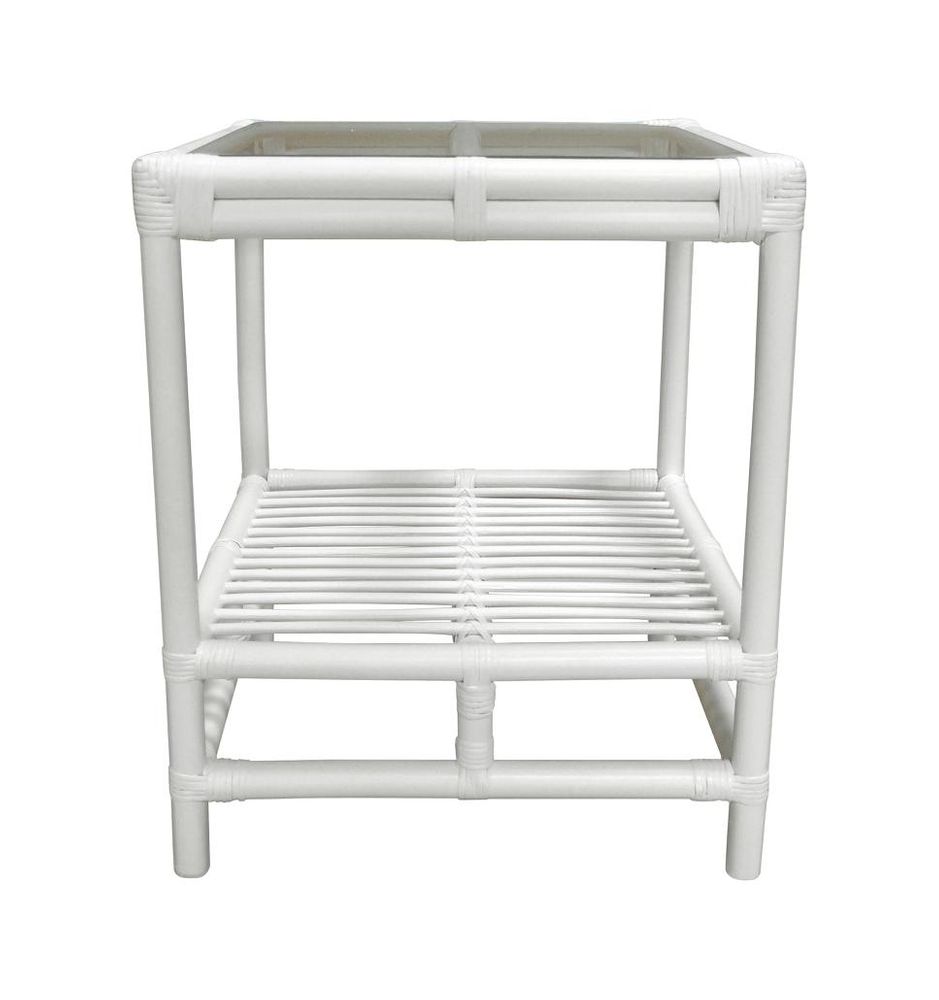 • Bring the beach to your home with our Havana Rattan Side Table. Crafted from white finished rattan, this side table exudes laid-back elegance, while its sleek tempered glass top adds a touch of contemporary flair. With a convenient storage shelf, it's ideal for displaying your favorite books or mini decor, making it a versatile addition to any living space.