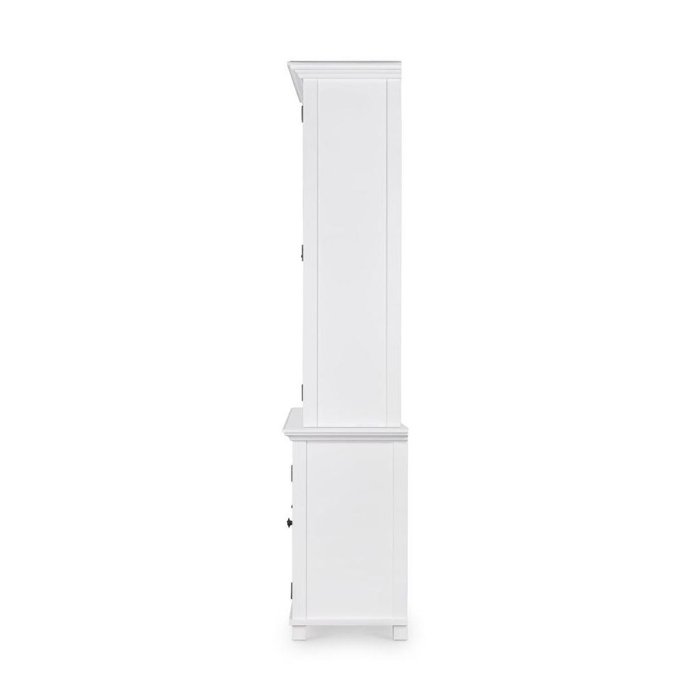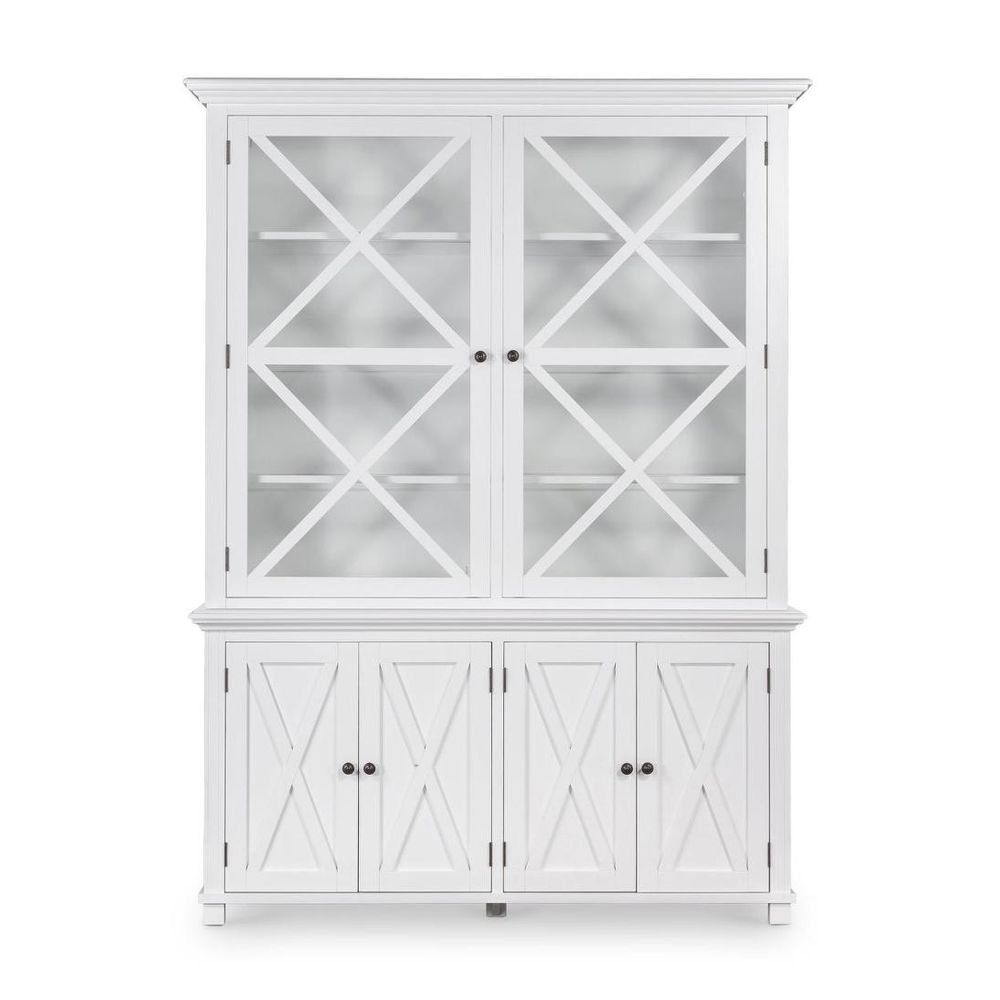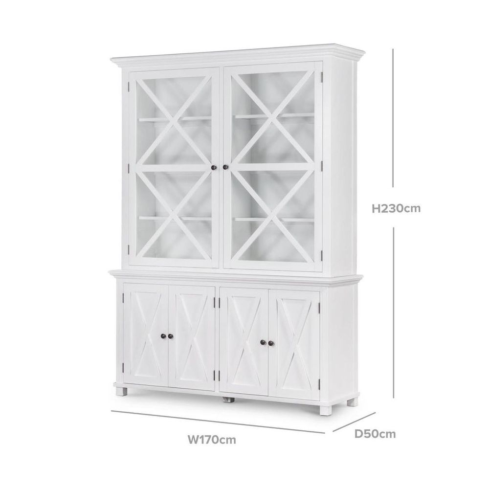 • Classic charm meets modern sophistication with our Sorrento Tall Glass Door Cabinet in White. This cabinet boasts a sturdy structural design adorned with elegant cross detailing. With its combination of low cupboards and exposed shelves, it provides ample space to organize and showcase your finest ceramics and crockery, adding a touch of elegance to your dining room or living area.