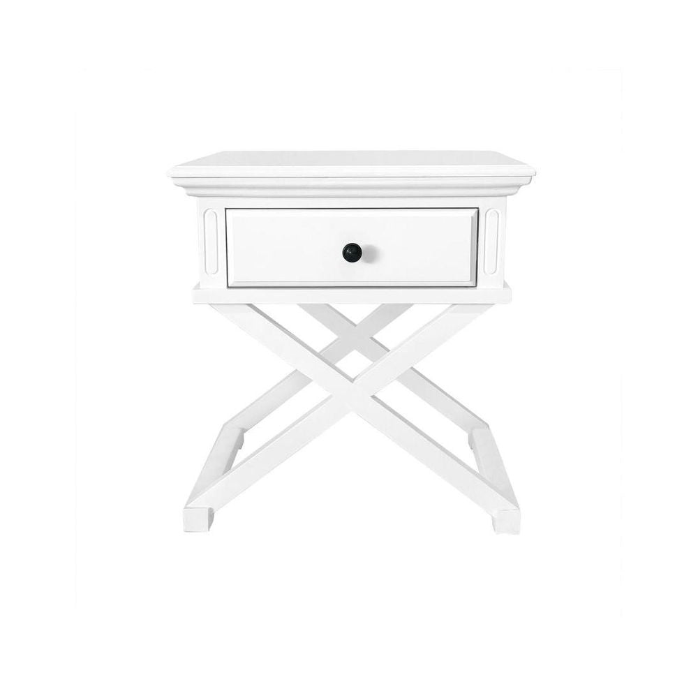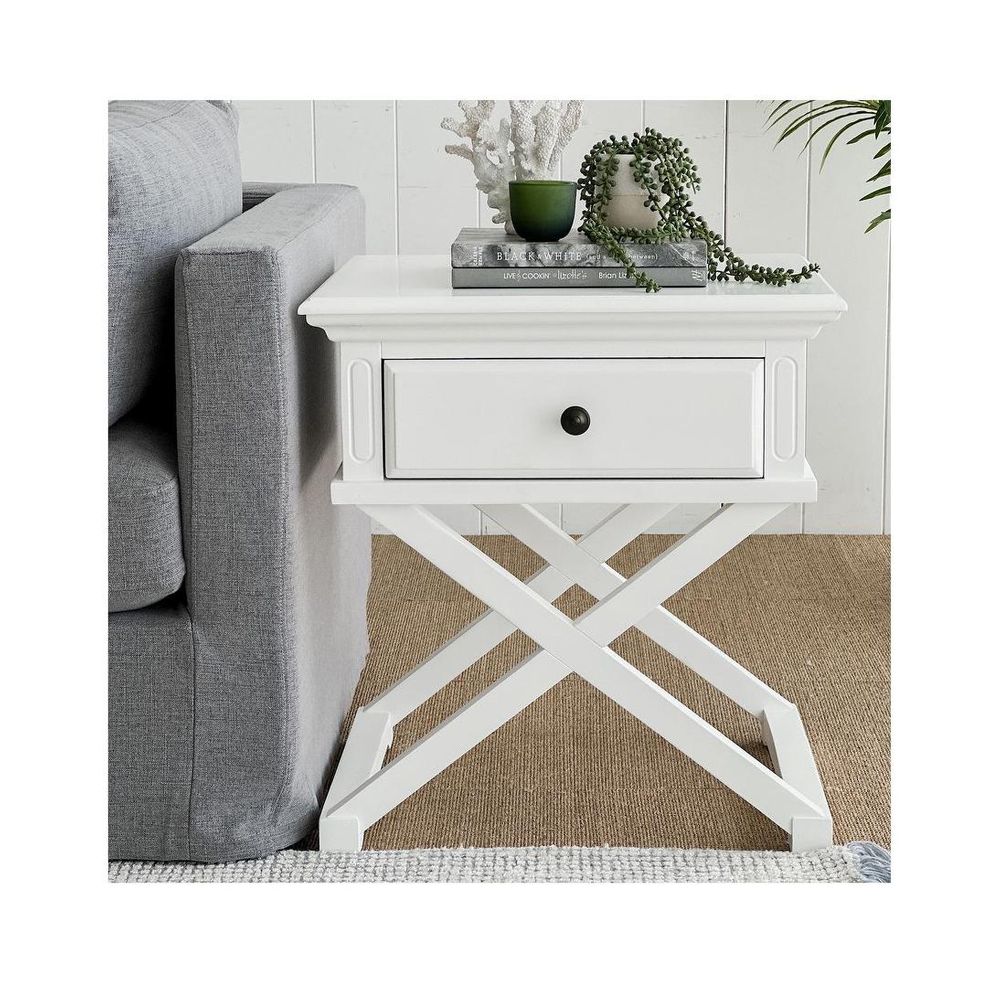 Sorrento Cross Leg Hamptons Side Table W/Drawer White