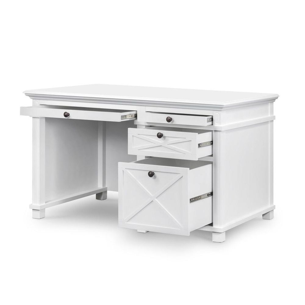 • Unleash your productivity in style with our Sorrento Desk in White. Blending classic elegance with modern functionality, this desk is the ultimate home office companion. With ample storage and a sleek design, it's not just a desk, it's a statement piece that elevates any workspace. Whether it's for your home office or as a chic addition to your bedroom, this desk ensures you work with flair and finesse.