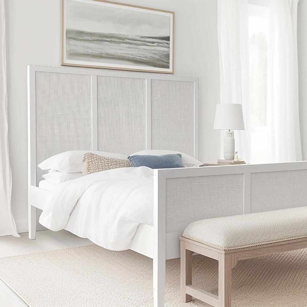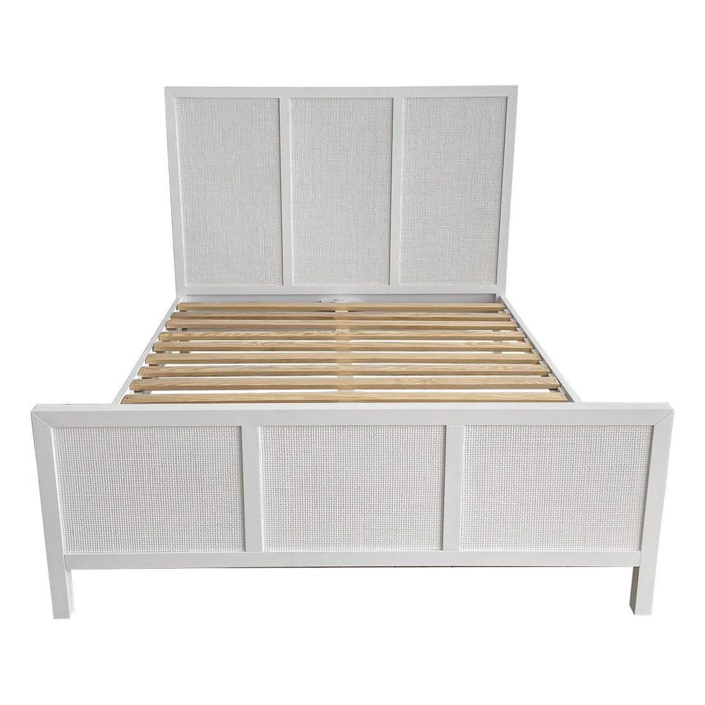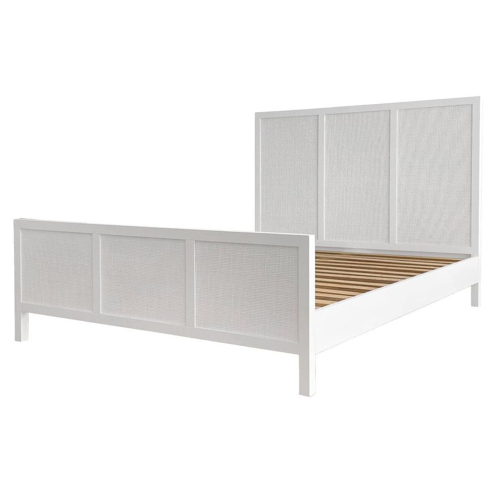 Santorini Hamptons Timber/Rattan Queen Bed White