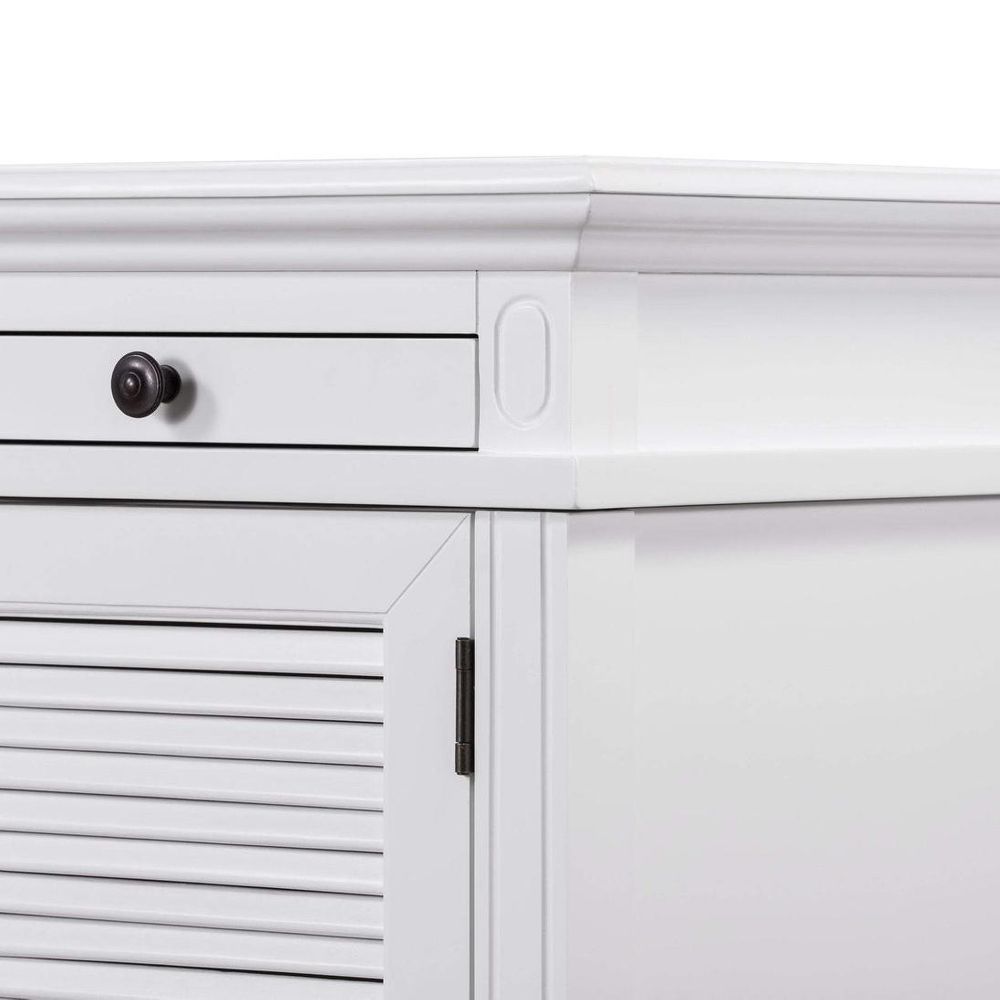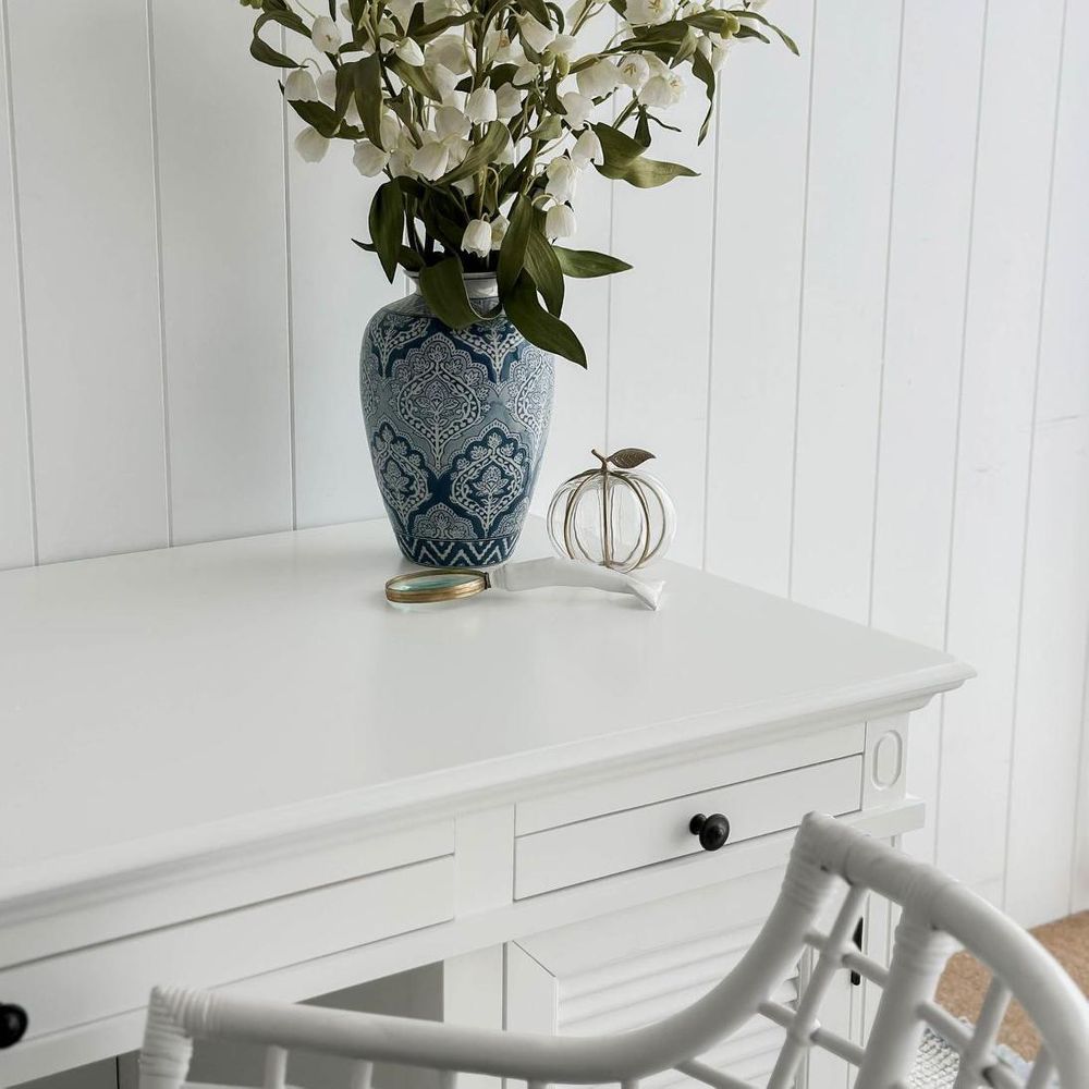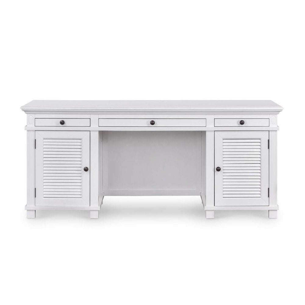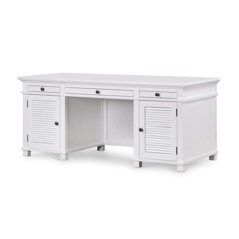 • Step into coastal productivity with our West Beach Desk in White Double Leg, where work meets waves in style. With three drawers and two louvered bottom cupboards on each side, this desk offers both storage and surface space for your tasks. Whether it's for your home office or a creative corner, this desk's double leg design provides ample storage potential and workspace.