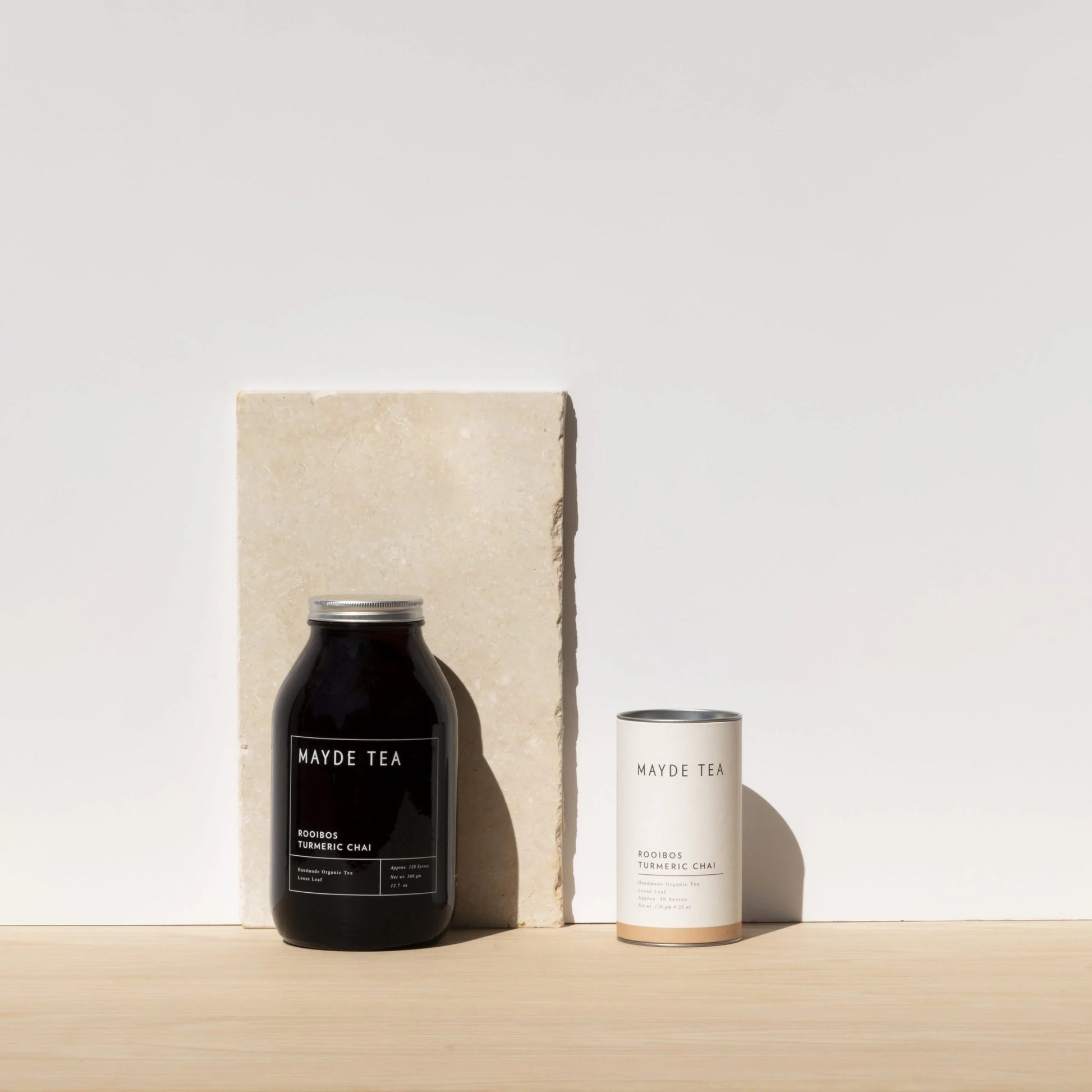 境界を越えたブレンド、ルイボス ターメリック チャイフュージョンの輝くような包みに浸り、一口ごとに健康、歴史、自然の芸術性を讃える世界へと誘います。