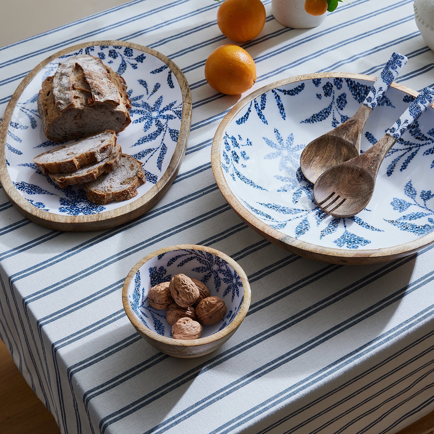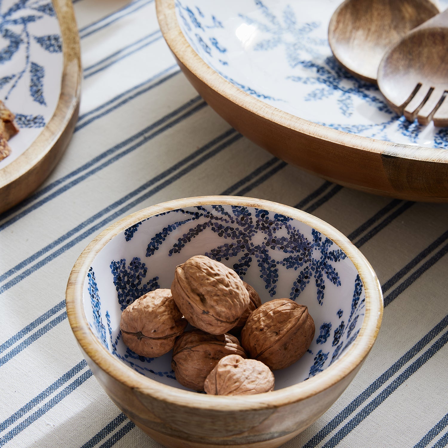 • The Seville Small Bowl is perfect for serving a range of sides. Featuring a unique mango wood exterior with a food safe enamel insert, printed with our hand painted Seville print in blue on a white background.