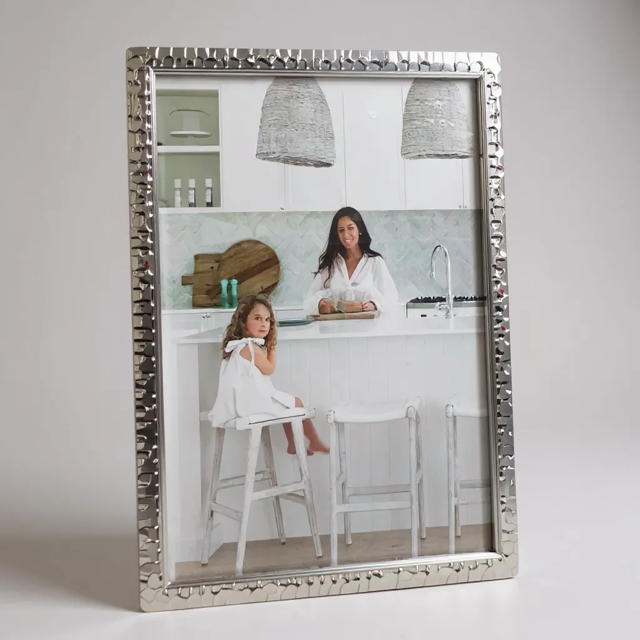• Crafted in a refined silver finish, the 161C Light Hammer Silver Piper Frame elegantly showcases your cherished 4x6" photos. Its subtle hammered texture adds depth and character, enhancing any décor with timeless sophistication and a modern edge. Perfect for highlighting treasured memories with understated grace.
