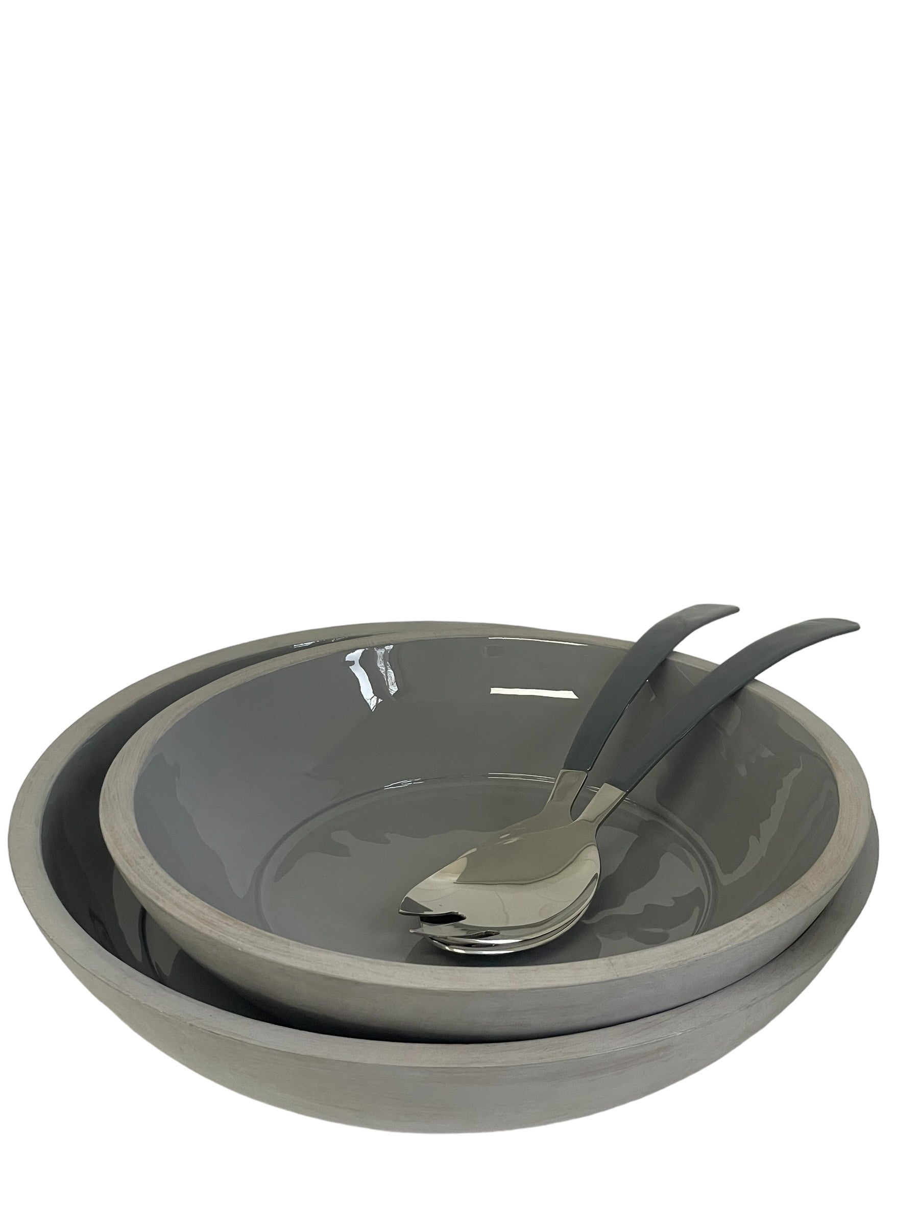 GREY ENAMEL ROUND TIMBER BOWL 31CM