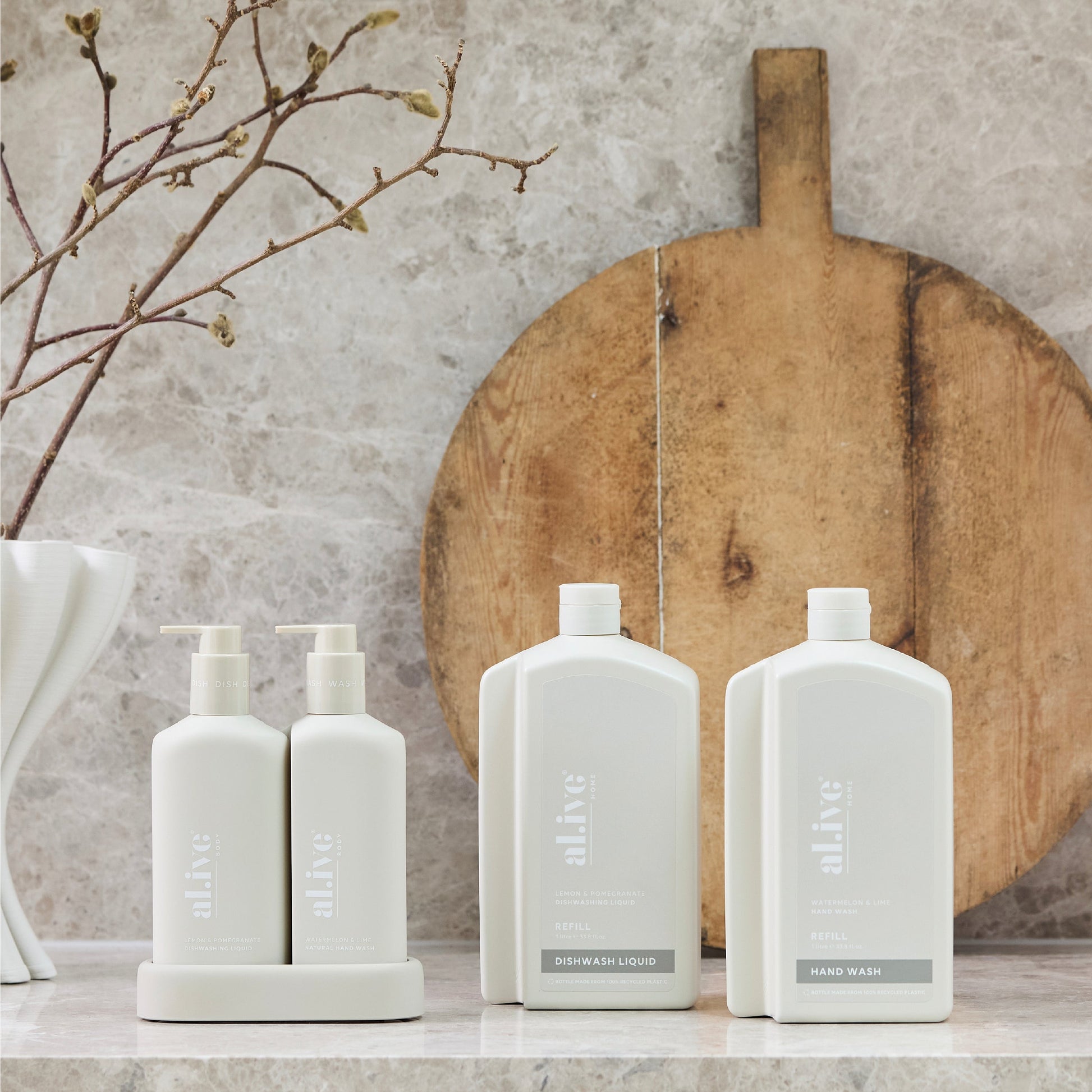 Each refill is designed to refill the 300ml al.ive body Hand Wash bottle over three times. With a controlled-flow spout for mess-free pouring, compact shape for easy storage, and full kerbside recyclability, it offers a practical, premium solution while extending the life of the product you already love.