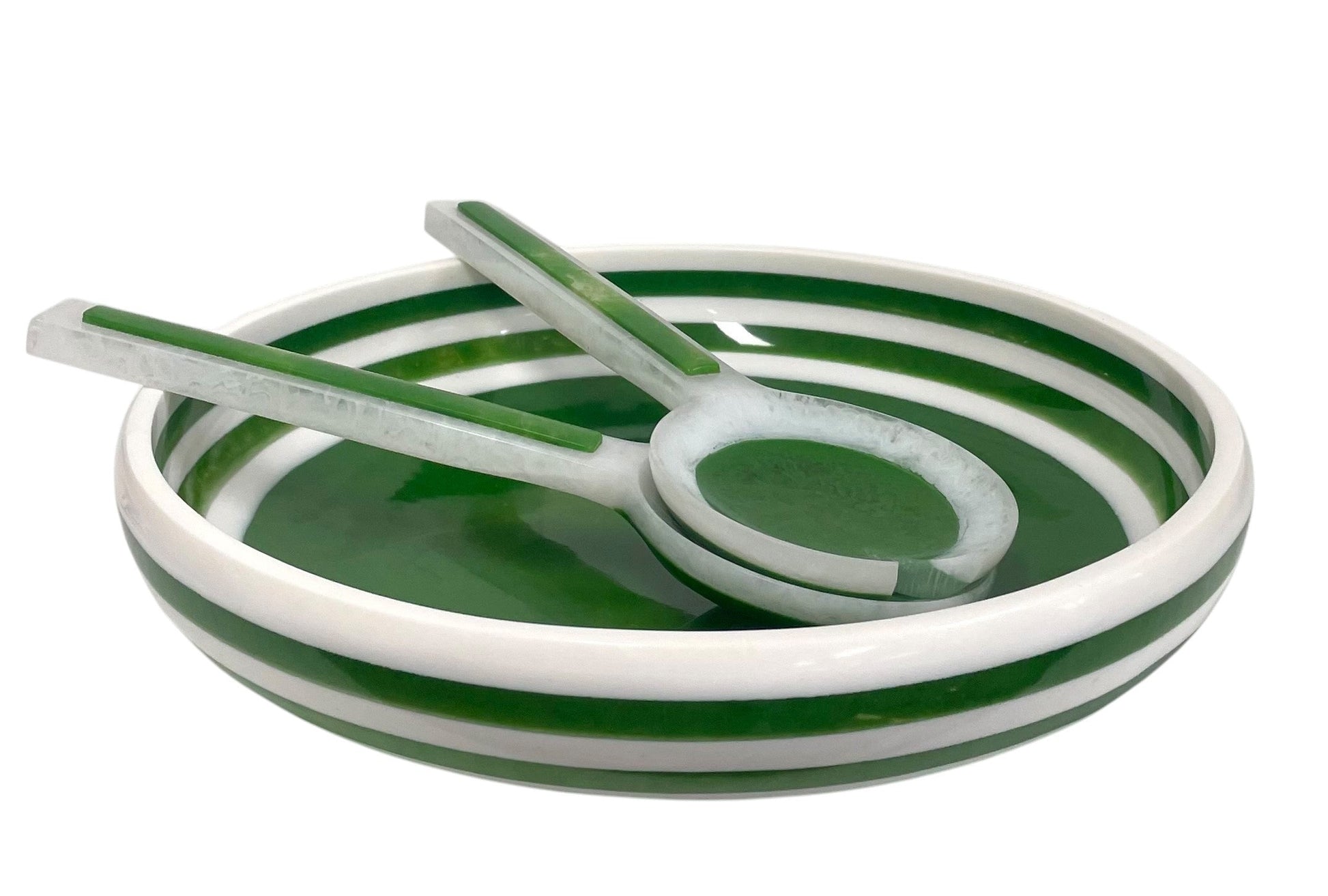 • Elevate your dining experience with our Porto Green & White Resin Bowl. Crafted from luxurious green and white resin, this elegant salad bowl will add a touch of sophistication to your table setting. Its 34.5cm size is perfect for serving large salads, making it perfect for entertaining or everyday use. Impress your guests with this exclusive and stylish addition to your dining collection.