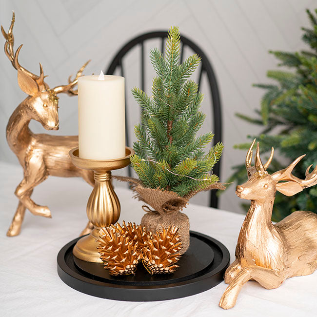 • Bring a touch of rustic elegance and festive charm to your home with the Pine Burlap Jute Tabletop Tree in lush green. Standing at 36cm high, this petite yet beautifully detailed tree captures the timeless allure of natural pine, wrapped at its base in soft burlap jute for an organic, handcrafted finish. Perfect for creating a cosy, woodland-inspired display, it adds a gentle glow of seasonal spirit to mantels, consoles, or tabletops. Whether styled alone for a minimalist look or adorned with your favourite miniature ornaments and twinkling LED lights, this charming tree evokes the warmth and wonder of the holidays in every corner of your home.
