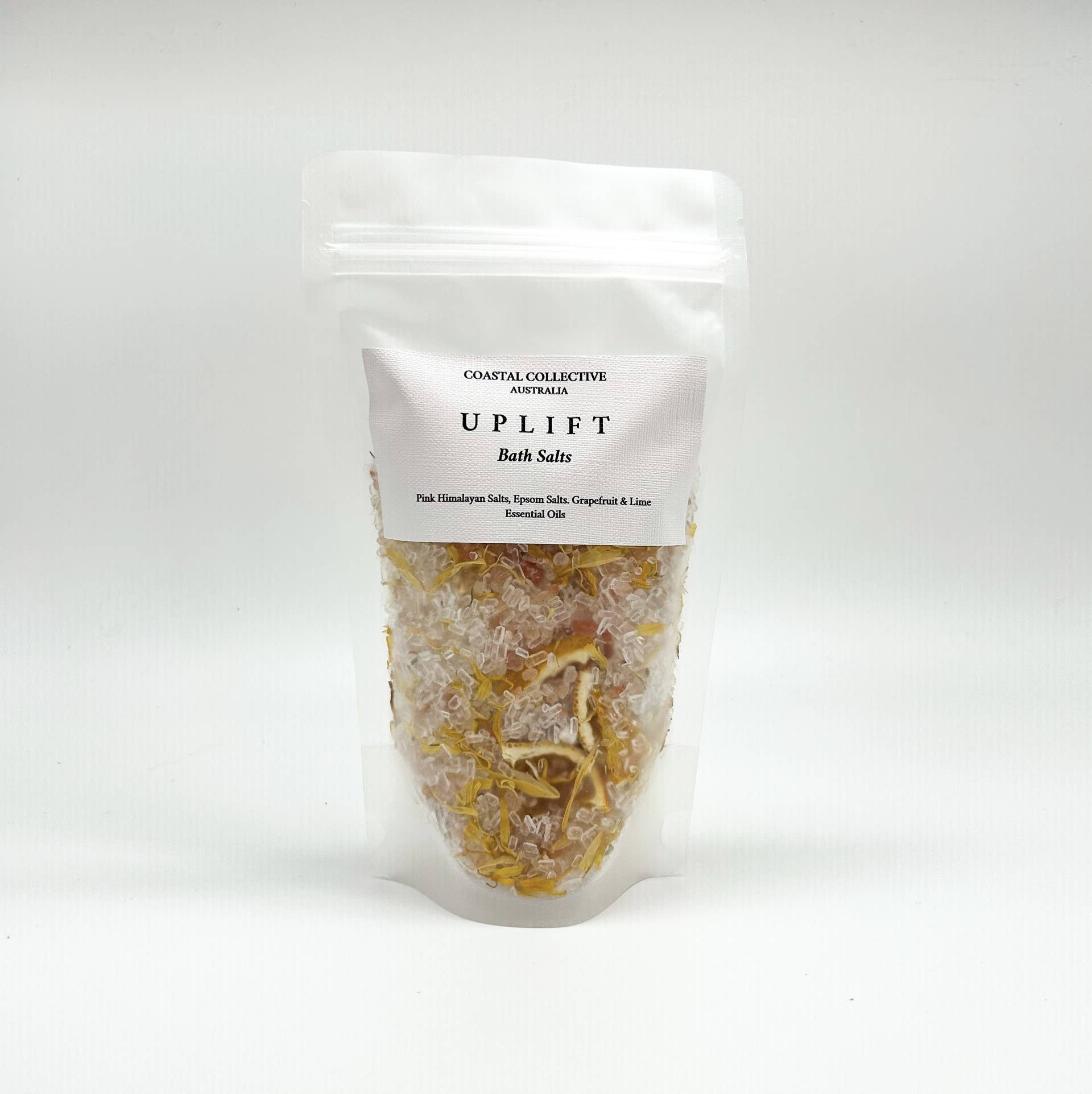 • Coastal Collective Australia presents our Uplift Bath Salts, a 350g package of pure relaxation and rejuvenation. Immerse yourself in a bath infused with our salts, designed to uplift your senses and provide a tranquil spa-like experience right at your home. Our bath salts are crafted with utmost authenticity, reflecting the beauty and quality that Coastal Collective Australia is renowned for. Indulge in this luxurious bathing essential, and bring a piece of Australia's allure to your doorstep.