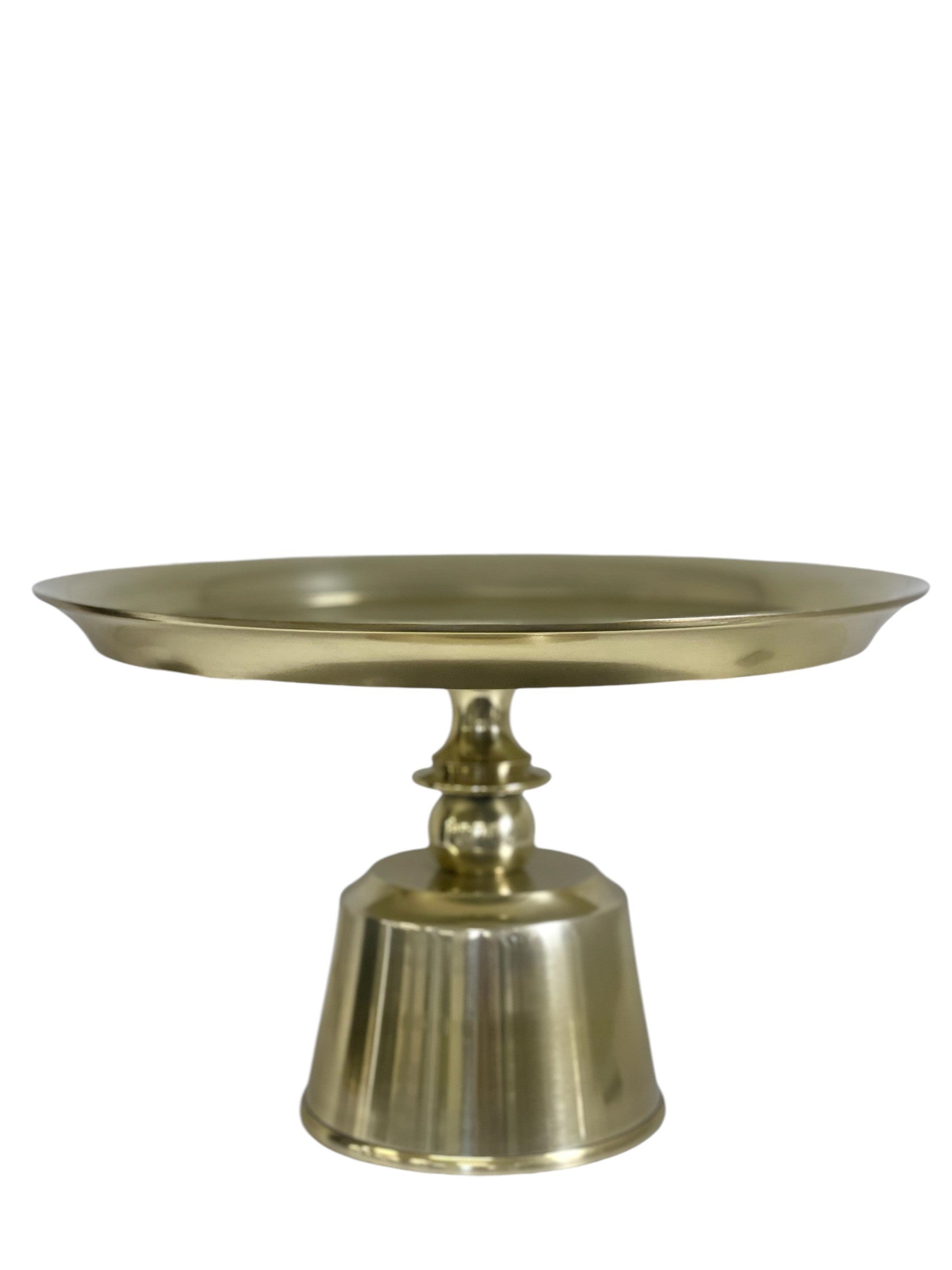 • This luxurious gold sculptured pedestal fruit/cake stand is the perfect addition to any elegant dining table. Made of high-quality materials, it adds a touch of sophistication to any occasion. Whether for displaying a delicious cake or a beautiful fruit arrangement, this stand is both functional and visually stunning.