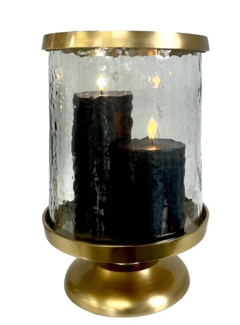 • Transform your space with the Mottled Glass Gold Hurricane. Crafted with a mottled glass design and a luxurious gold finish, this small hurricane creates an elegant atmosphere and adds a touch of sophistication to any room. Enhance your decor with this exclusive and timeless piece.