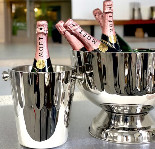 • Indulge in premium luxury with our exquisite HALF WRINKLE LARGE FOOTED CHAMPAGNE TUB. Crafted with DOUBLE WALL STAINLESS STEEL, it offers unparalleled insulation for chilled beverages. This timeless piece has a capacity of approximately four bottles and measures 37x28cm, making it a must-have for any elegant gathering.