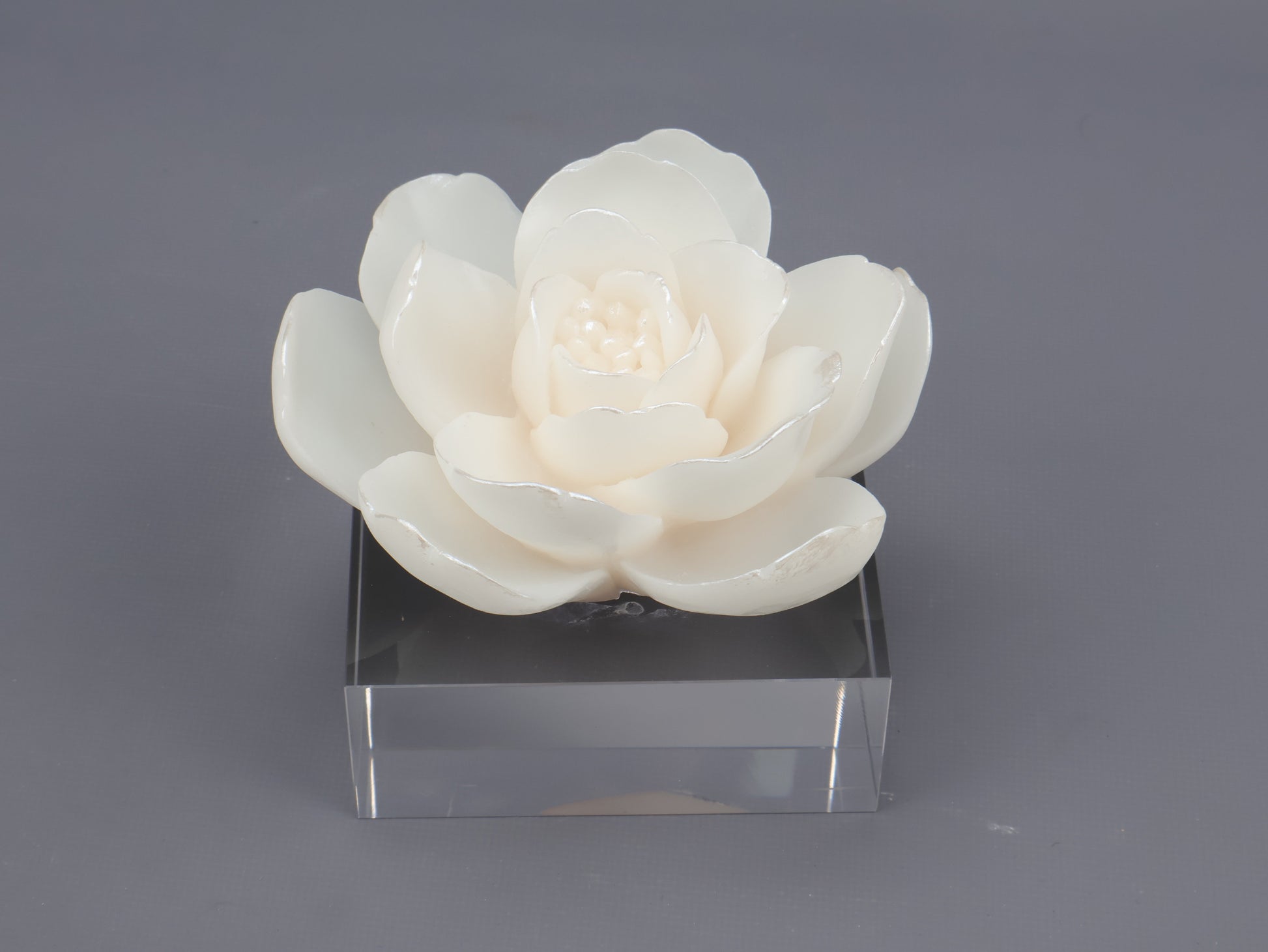 86D Resin Floral W/ Acrylic Base : Pearl Lotus