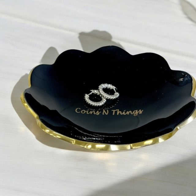 • Elevate your home decor with our Scalloped Edge Trinket Bowl. The intricate scalloped edges add a touch of sophistication to this versatile bowl that can be used for trinkets or coins. Make a statement with this luxurious and exclusive piece.