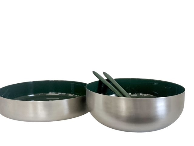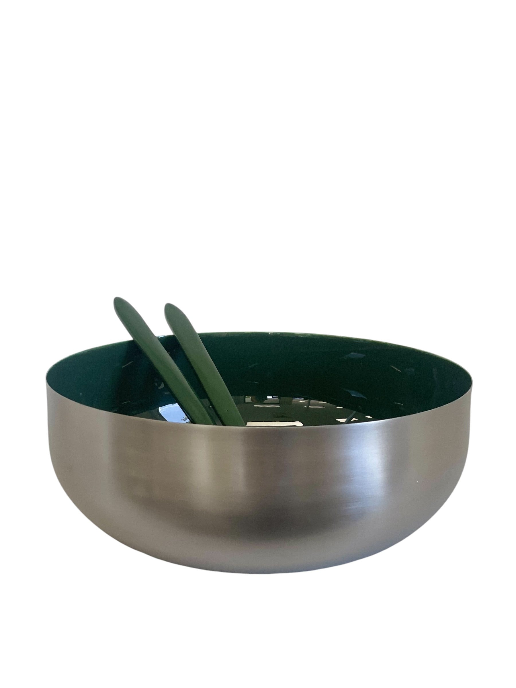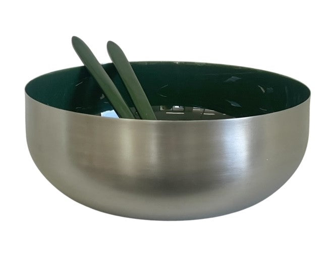 • Indulge in the sophisticated elegance of our Enamelled Salad Bowl. Crafted with a forest green enamel coating, this 26cm bowl provides a luxurious touch to your dining experience. Elevate your table setting with this exclusive and tasteful addition to your collection.