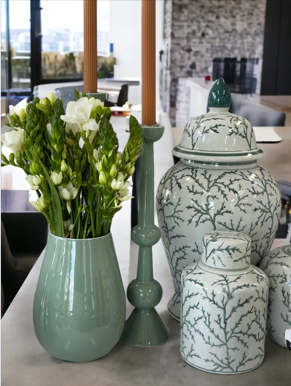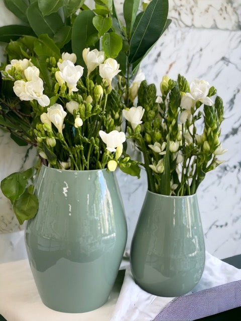 • Indulge in the luxurious elegance of our Enamelled Green Sculptural Vase. This handcrafted 20cm piece boasts a beautiful green enamel finish, giving it a unique and eye-catching appeal. Perfect for adding a touch of sophistication and artistry to your living space.