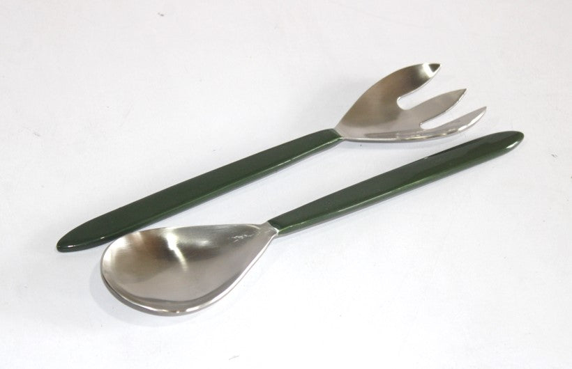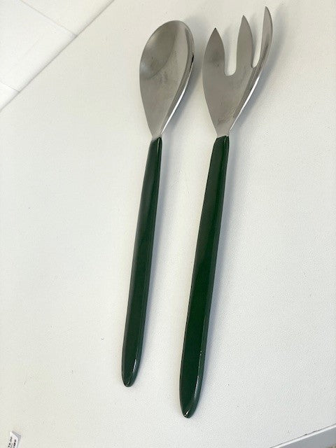 SALAD SERVERS W/DEEP GREEN ENAMEL