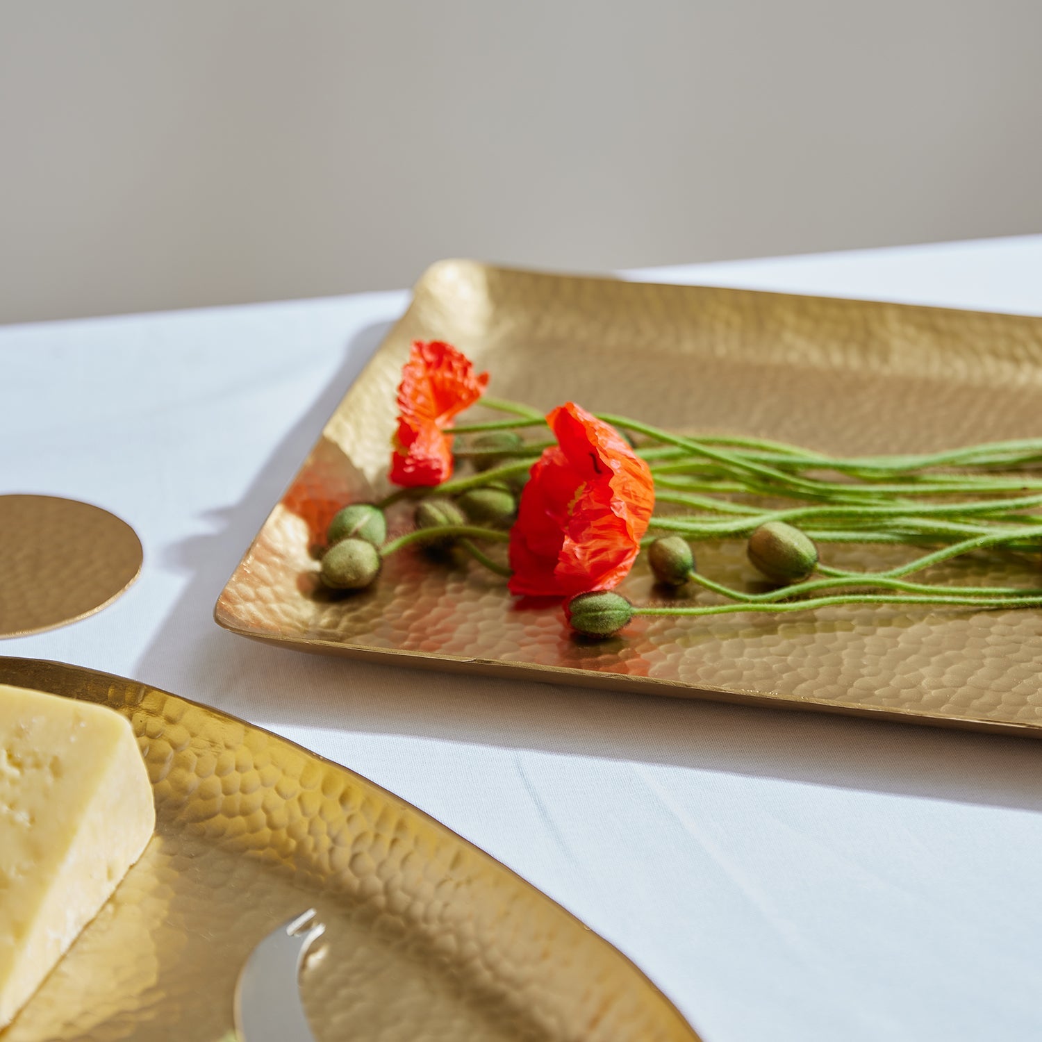 • The Alma tray range has a hand beaten gold finish and the perfect functional or decorative piece.