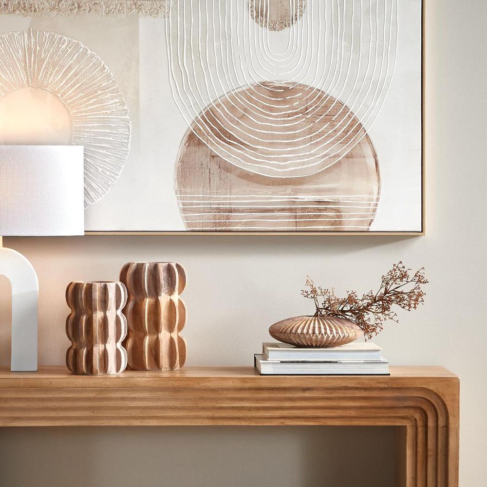 • Carved from high-quality natural rainbow sandstone, the Flint Collection is uniquely formed by nature, showcasing an inherent subtle variation in color. The warm, earthy tones of the sandstone create a harmonious contrast, effortlessly blending with any interior décor style, from contemporary to traditional. Pair as a set of two vases for maximum impact.