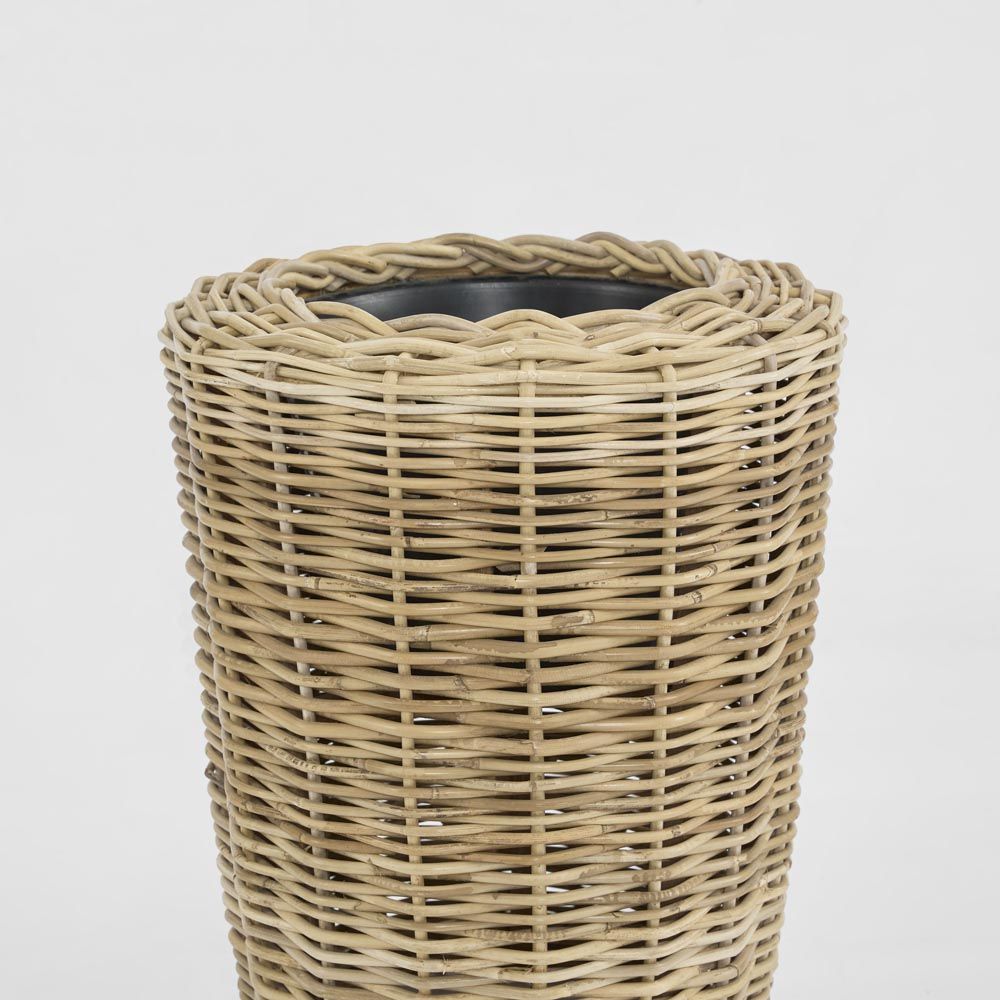 • The small Rattan Plant stand is a tightly woven rattan basket ideal for planting in your trees or plants. This cleverly designed tall floor basket enhances planted greenery in a living room, or patio. It is lined with a plastic pot which makes for easy planting of trees or large ferns or any fruit tree for indoors. Fake or artificial trees look amazing in this rattan basket plant stand. FOR INDOOR USE ONLY.