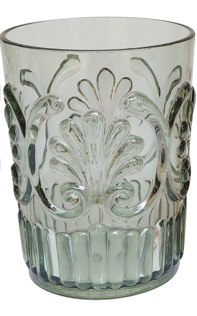 • Acrylic Tumbler in Scallop Sage Green. Bring a touch of elegance to your summer drinks with its stunning scallop design. Made with durable acrylic, it's perfect for both indoor and outdoor use. Enjoy your favourite beverages in style and sophistication.