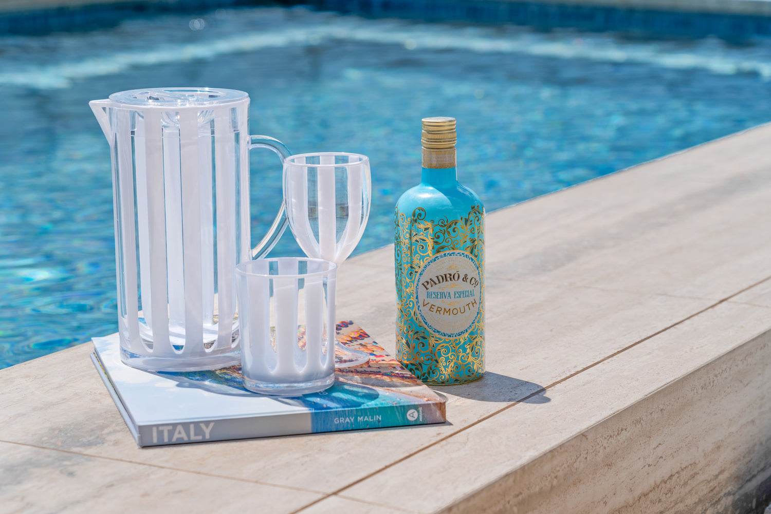 • Elevate your summer gatherings with our  ST TROPAZ WHITE STRIPE PITCHER/JUG. The elegant white stripes add a touch of luxury to any setting, perfect for serving your favourite refreshing drinks. Upgrade your summer experience with this exclusive piece.