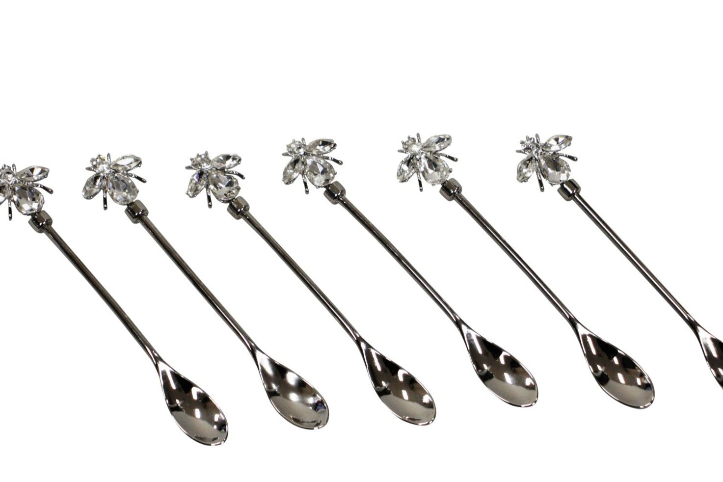 33C - Nckl Crystal Bee Spoon:Set 6 ($4Each)