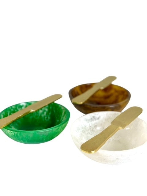 34B - Tortoise Shell Resin Dip Bowl W/Rganic Shaped Gold Knife