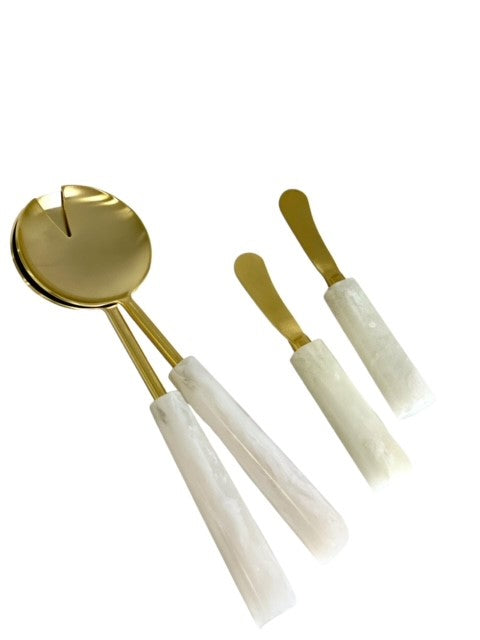 35A - Salad Servers Matt Gold /Alabaster